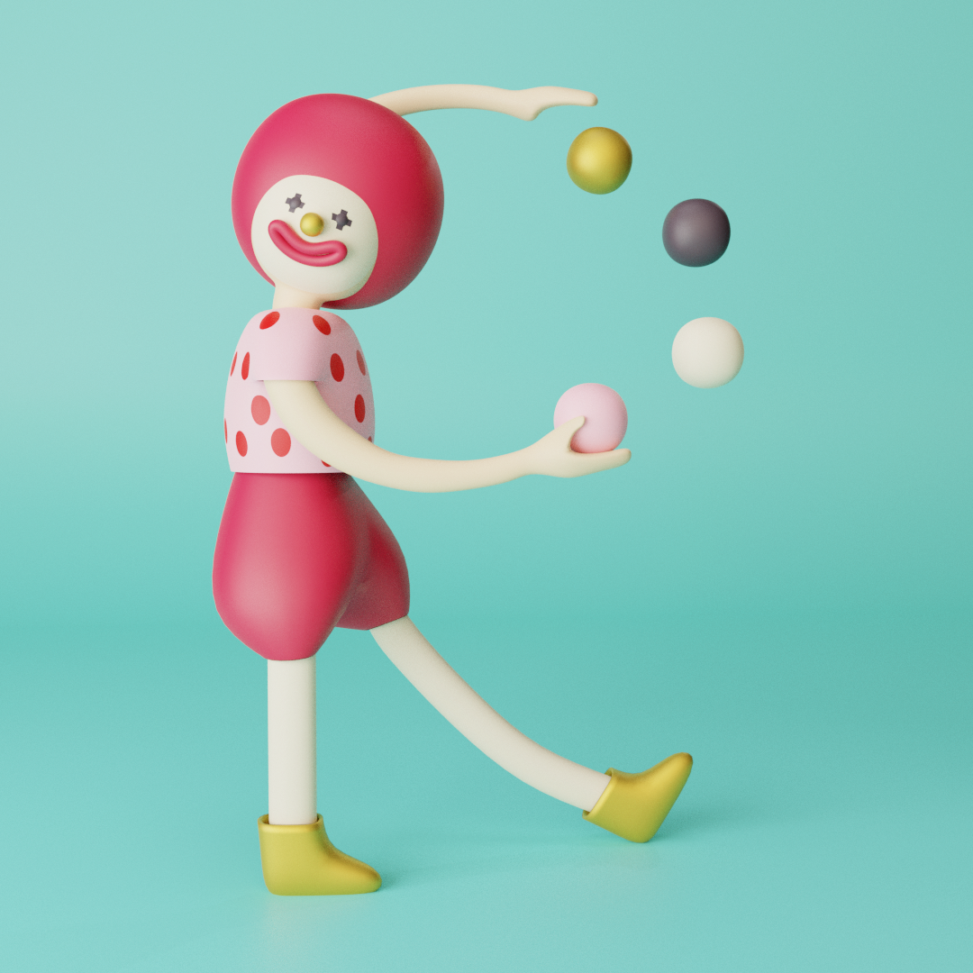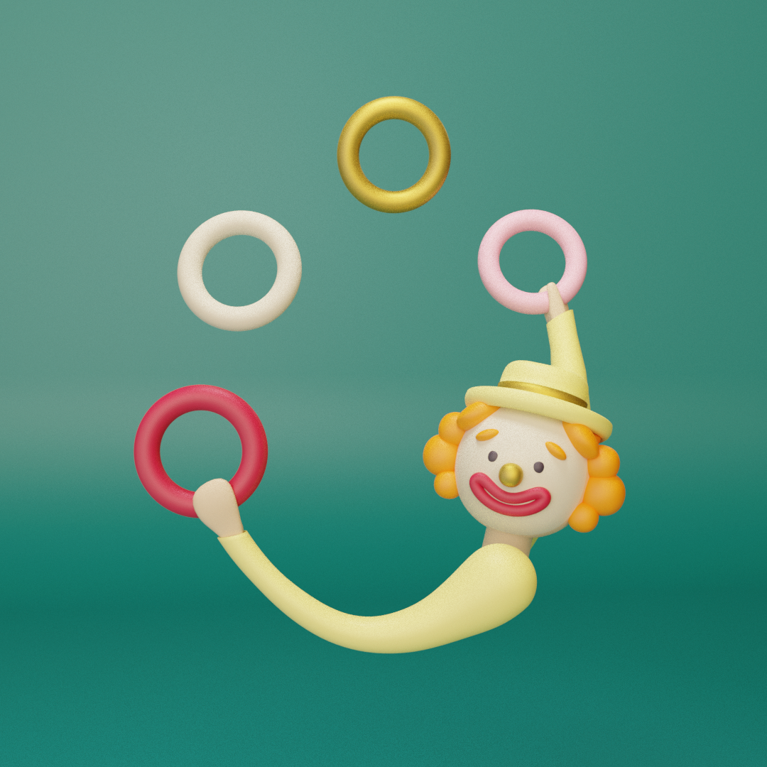 In 2021, I participated in the 8th edition of 36 Days of Type again! That year, I wanted to use the new 3D modeling skills I had picked up during the pandemic. I was also craving something colorful and fun, so I chose "circus" as my theme. I designed characters performing circus-inspired acts and poses to shape each letter of the alphabet.