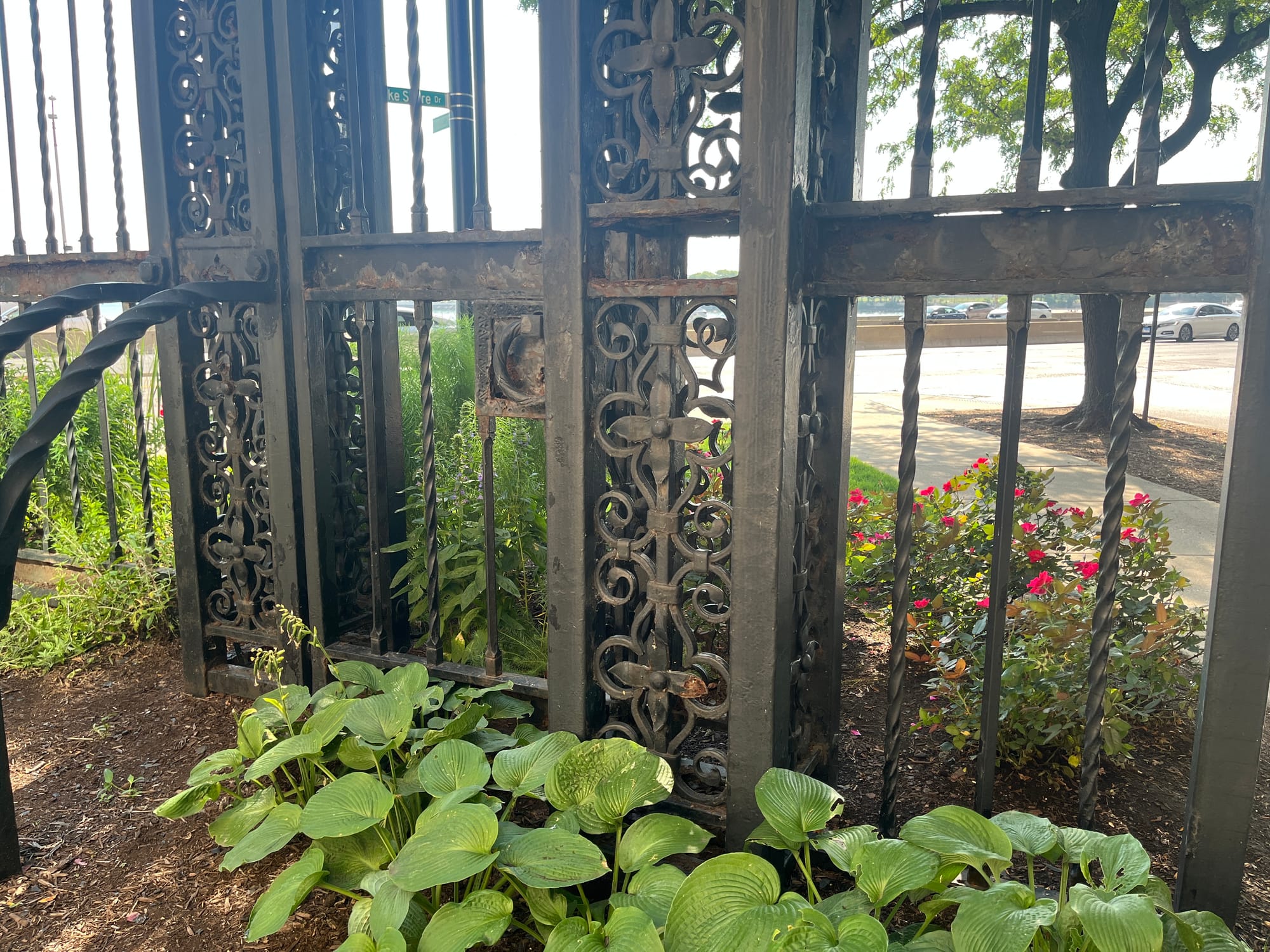 As I walked closer, I thought, Wait… haven’t I seen this before? Sure enough—it’s the McKinlock Gate at Northwestern University. It’s a memorial for George Alexander McKinlock Jr., a soldier who died in World War I, created by the artist Samuel Yellin. Pretty magnificent, right? Apparently, Yellin’s work can be found all over the U.S. The only other place I’ve been where he has work is The Cloisters in New York… though honestly, I couldn’t tell you exactly where it was.