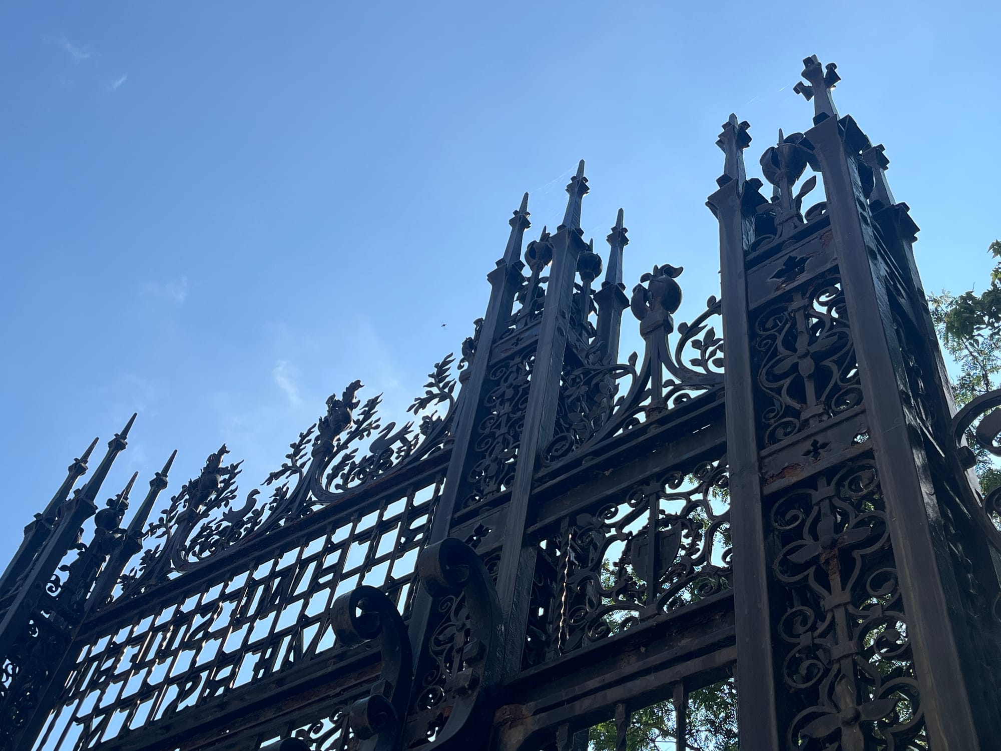 This morning I had to head downtown early, so I hopped on the bus. I arrived a little ahead of schedule, and the morning air was so cool and pleasant that I thought, “Why not walk a little more?” Instead of going straight in, I looped around the building, aiming for a different entrance. That’s when this massive iron gate suddenly came into view.