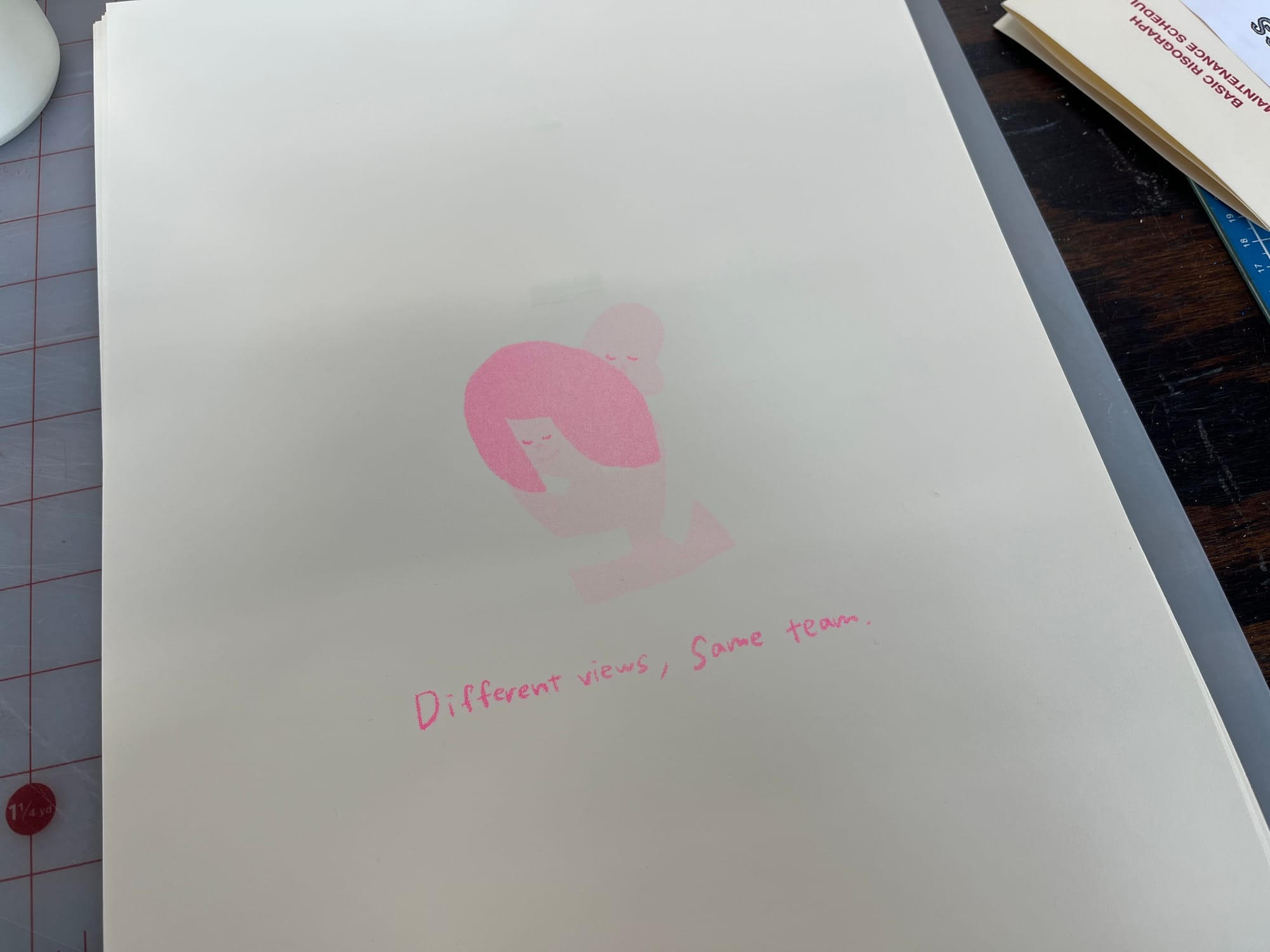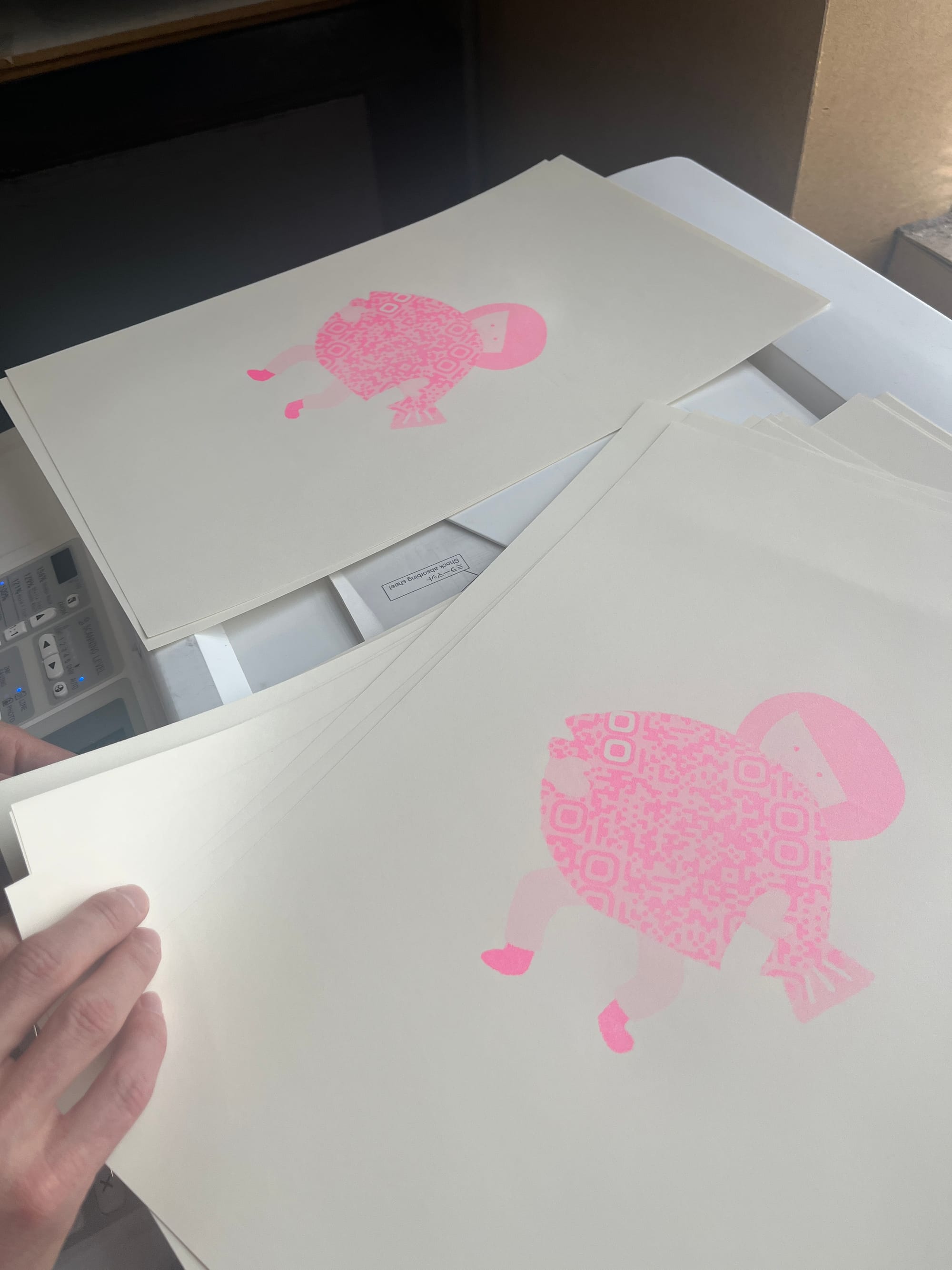 I printed two designs at the workshop today. One fun surprise was seeing how fluorescent pink and yellow ink created a perfect skin tone—something I never would’ve predicted. All thanks to the app’s smart color translation.