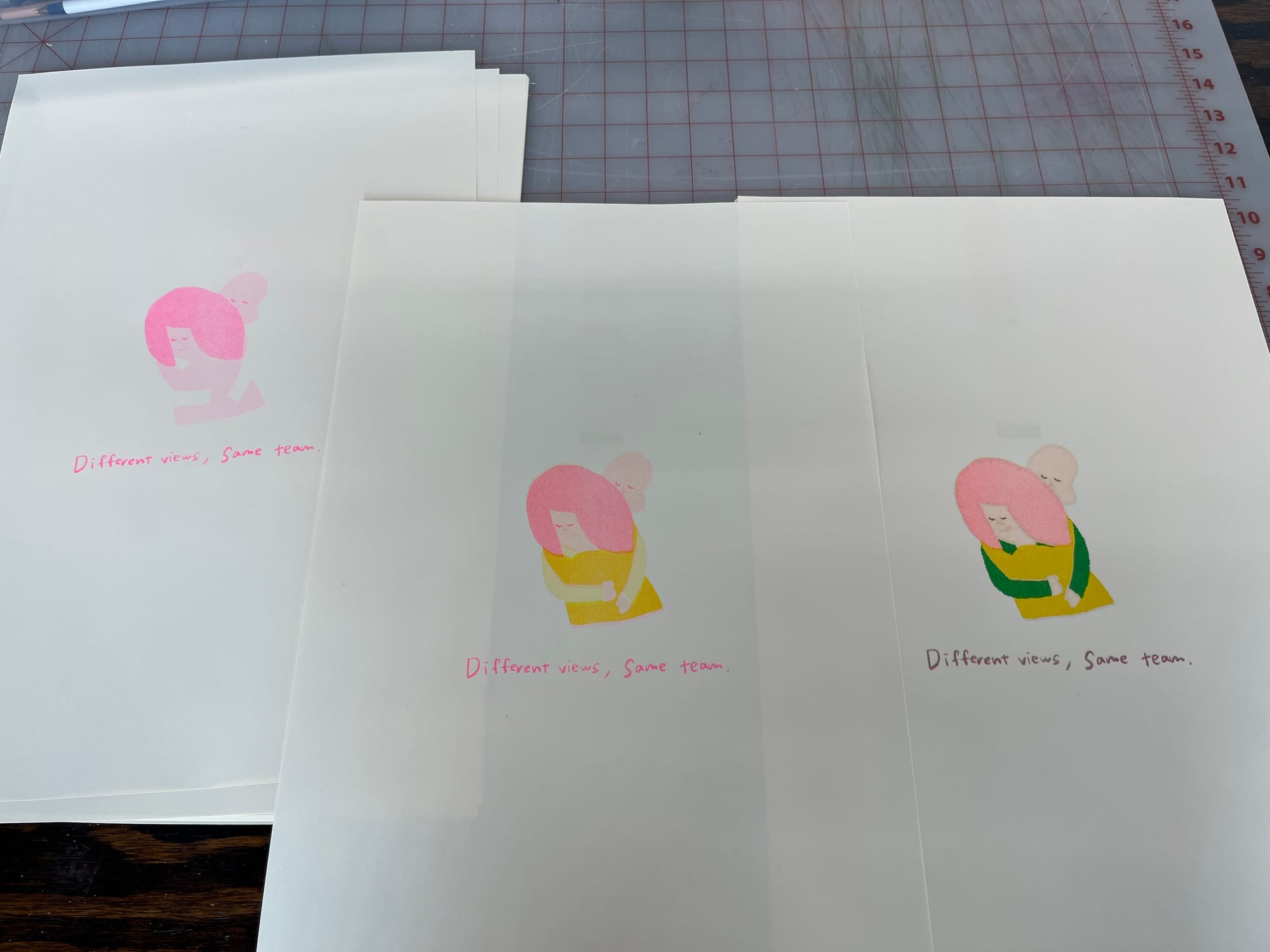This 4-hour workshop was beautifully structured: they taught us how to use the riso printer from scratch, and we had time to print as many of our own designs as we wanted. Best of all? After completing the class, we now have access to Spudnik's studio for future riso printing sessions, just by reserving time slots. Yay!