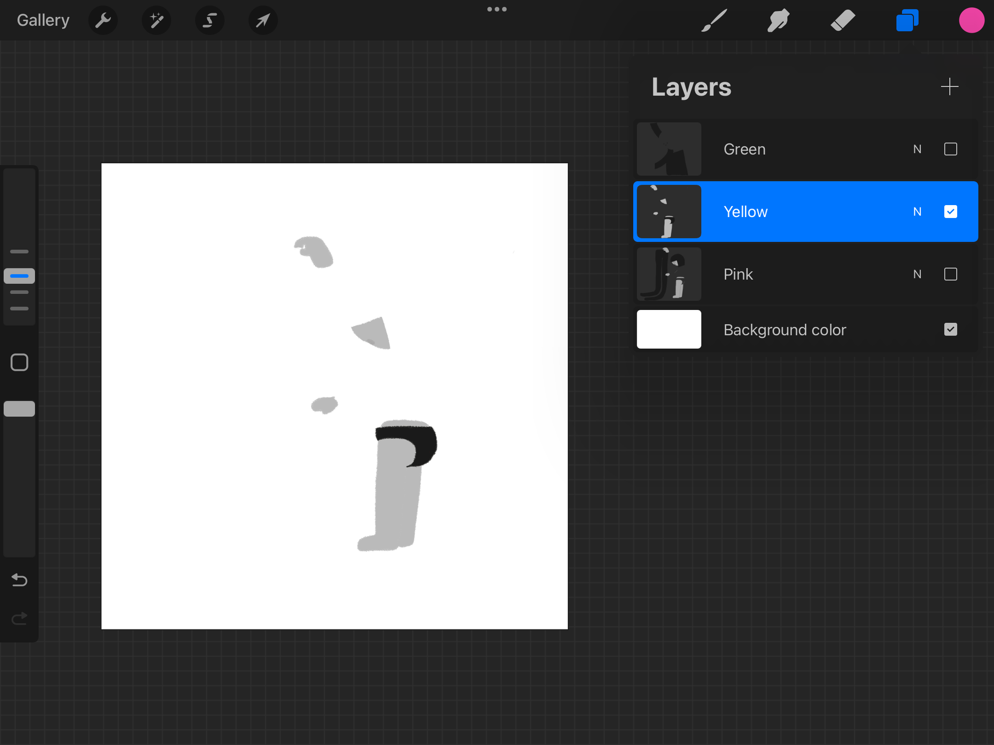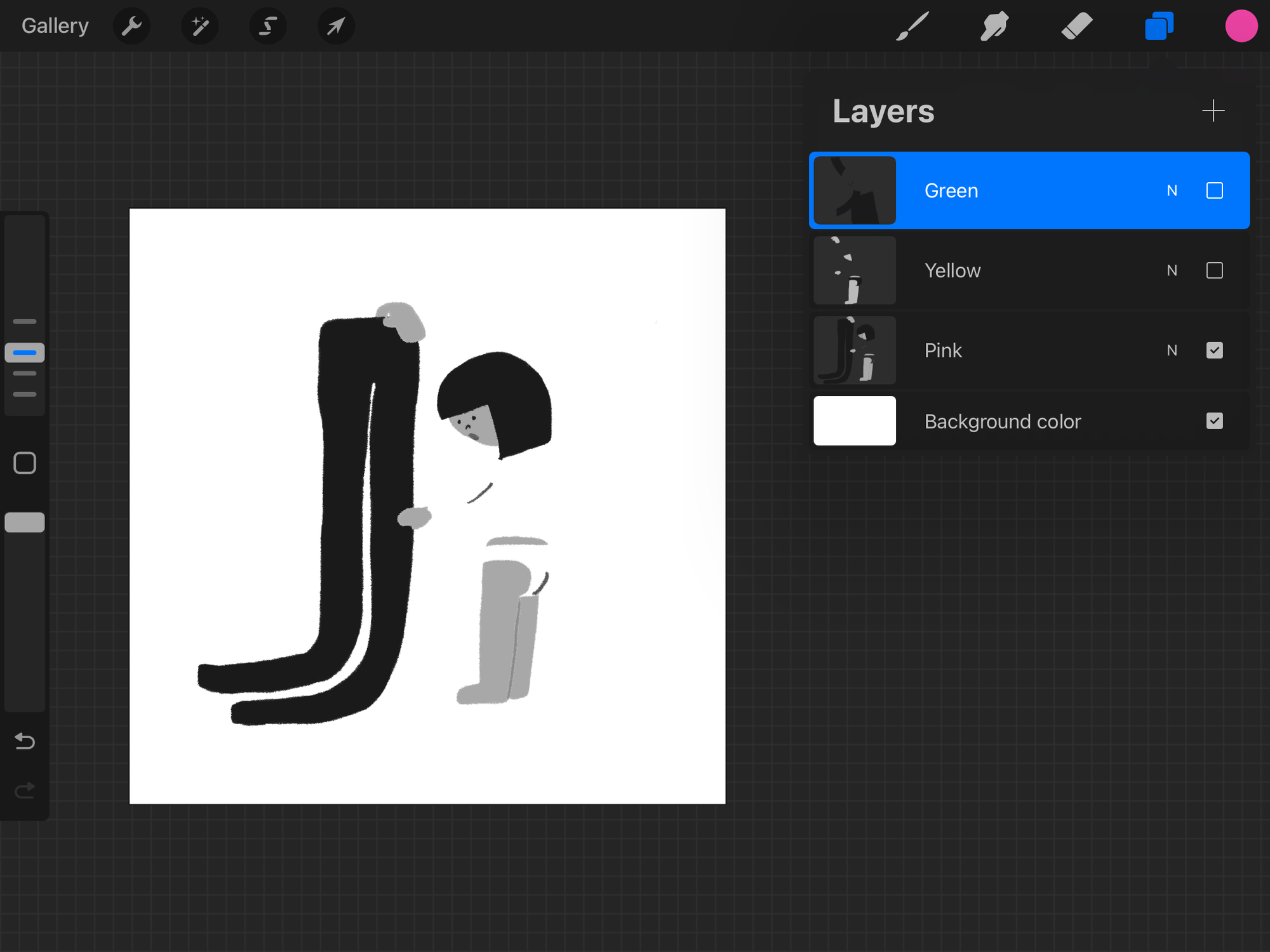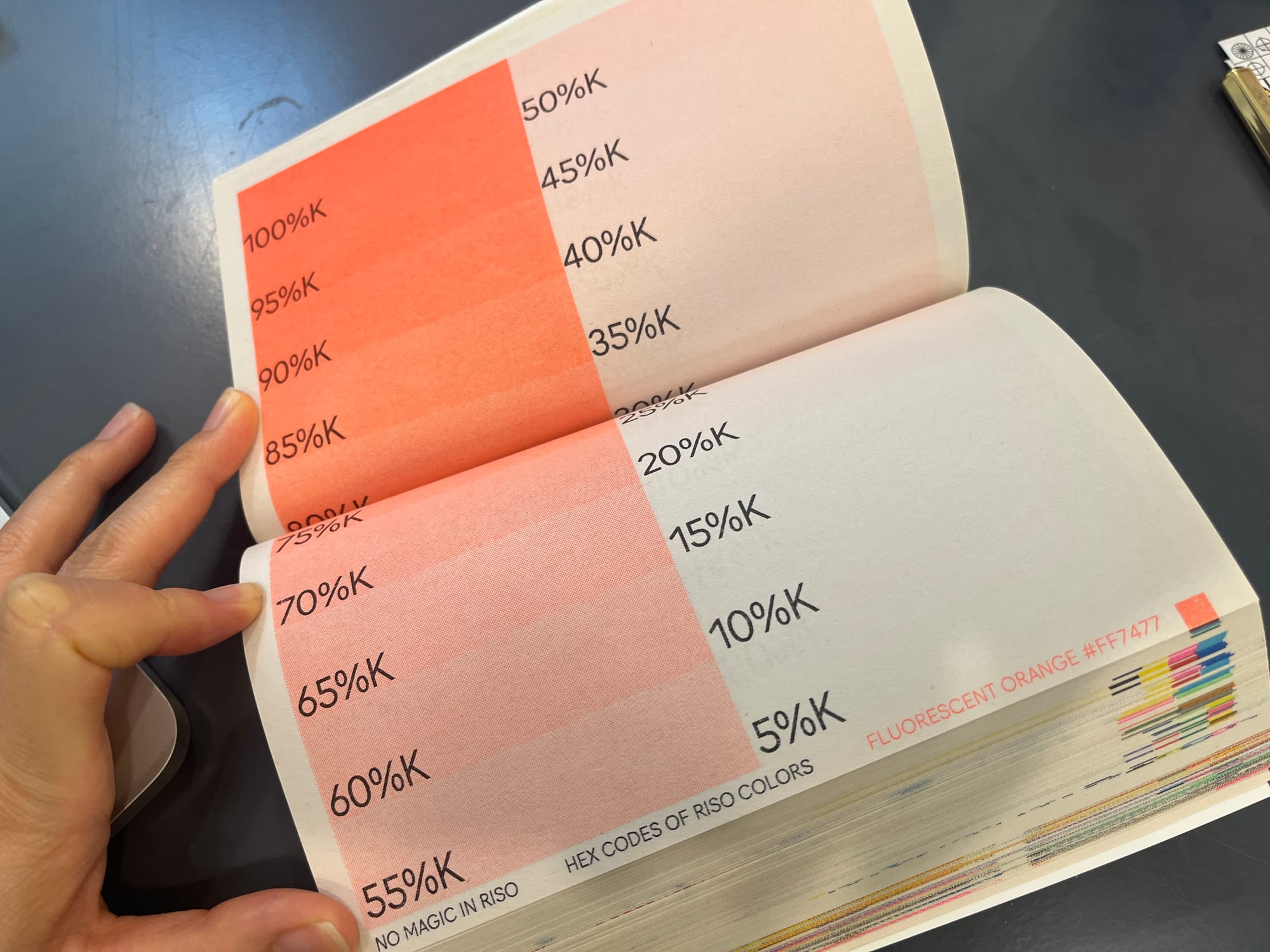 I’ve been using a book I had at home called No Magic In Riso to reference the ink samples while deciding which parts should be printed with which intensity of ink. Then, using that as a guide, I’m repainting everything in grayscale in Procreate.