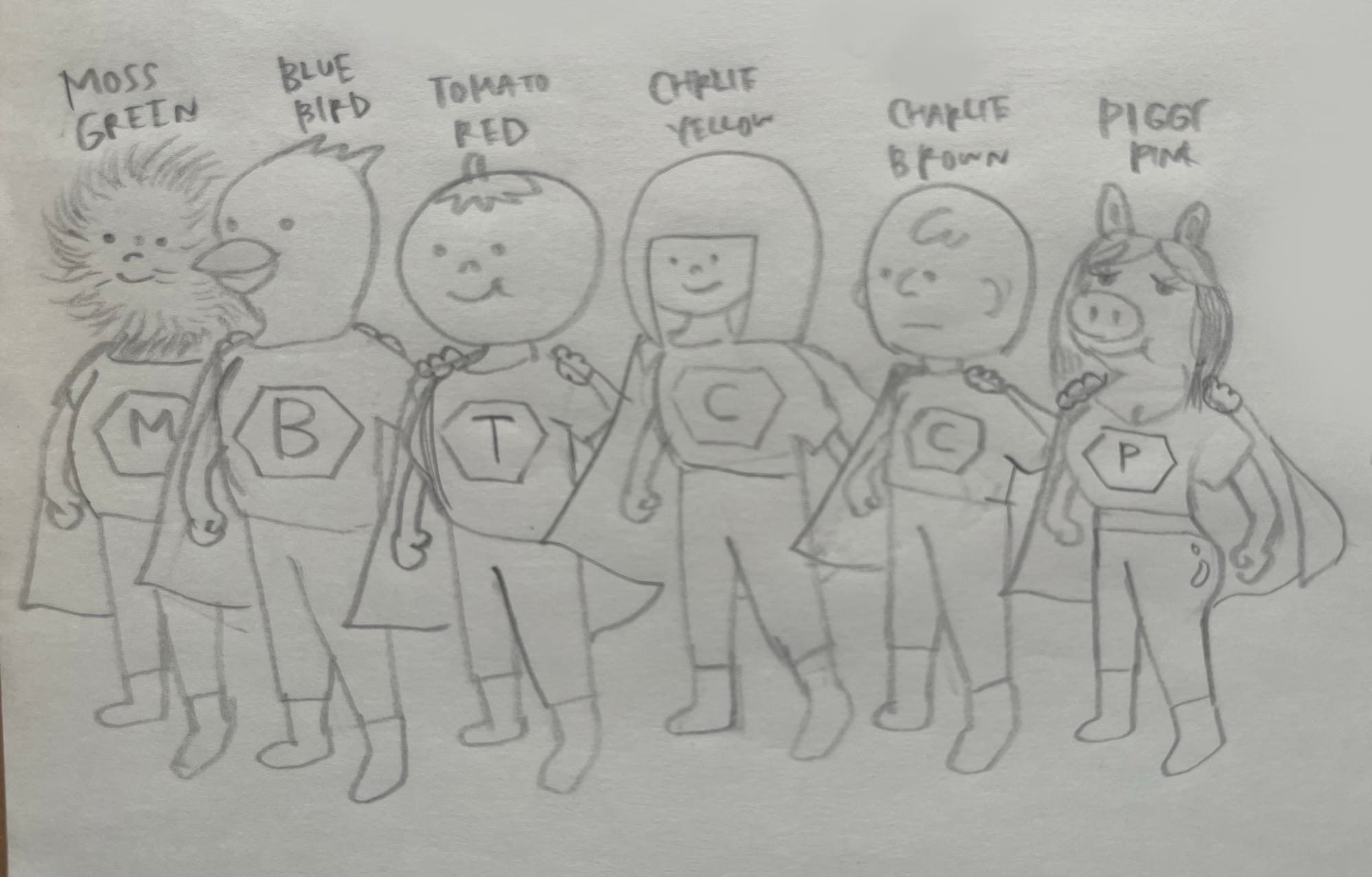 Yesterday’s pose sketches turned into a team of random little heroes. They’re silly—and I love them.