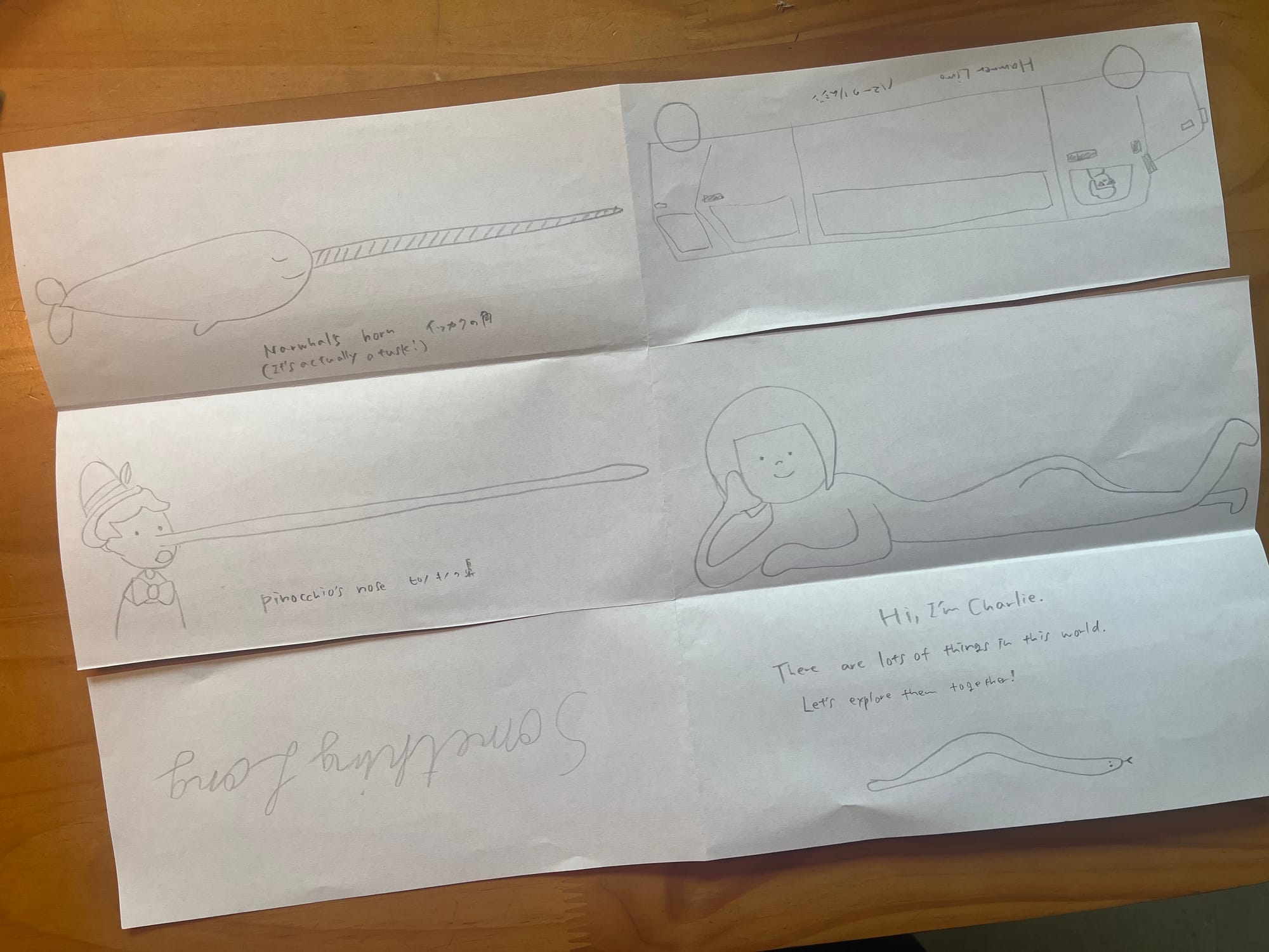 From there, I worked with my art director husband to decide which illustrations to include across 12 pages. I selected drawings from my Procreate archive and added bilingual captions in English and Japanese under each one.