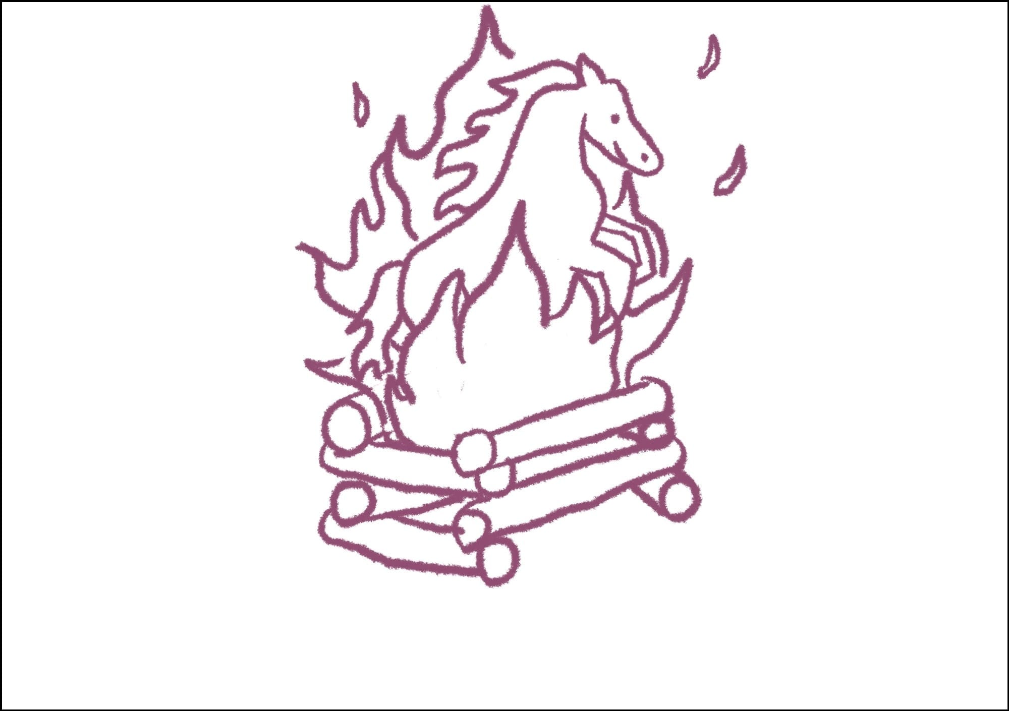 Another idea I started sketching is a horse emerging from roaring flames. But I have to be really careful with this one—it could easily look like the horse is burning, which would be a total disaster! That’s part of the challenge, though, and what makes it interesting.