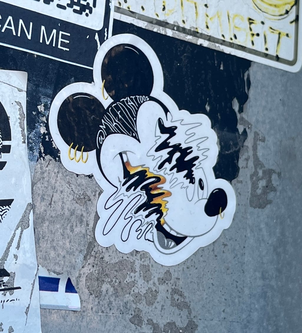 First up: this mysterious but adorable… tanuki(?) sticker situation. There are just so many of the exact same one all over the place—and somehow, that’s what makes it cute!Next, we have the one and only Mickey. Truly the king of characters—no matter how wildly the style gets reinterpreted, his visual identity holds strong. A legend.Now, I usually don’t include political stuff in this project... but this one? I surrender to the brilliance of the idea. It’s too clever not to share.And then we’ve got this: I have no idea what’s going on. Wait—is that a woman? Who is she?? I’m not even sure what I’m looking at, but I can’t stop looking at it.And finally, this one literally made me laugh out loud while walking down the street. Like—why? In what context?? Who made this into a sticker and thought, “Yes, this is what the world needs right here”?